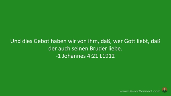 Und dies Gebot haben wir von ihm, daß, wer Gott liebt, daß der auch seinen Bruder liebe. -1 Johannes 4:21 L1912