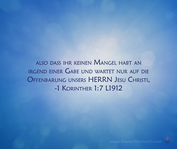 also daß ihr keinen Mangel habt an irgend einer Gabe und wartet nur auf die Offenbarung unsers HERRN Jesu Christi, -1 Korinther 1:7 L1912