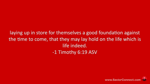 Schätze sammeln, sich selbst einen guten Grund aufs Zukünftige, daß sie ergreifen das wahre Leben. -1 Timotheus 6:19 L1912
