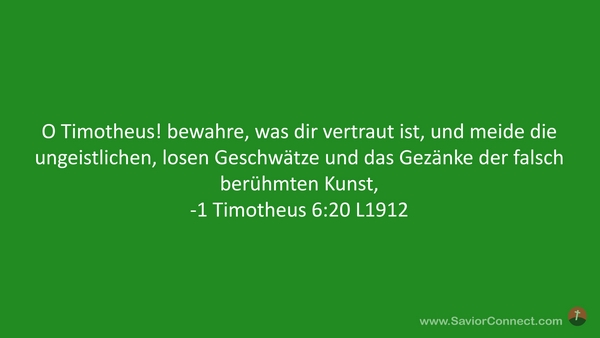 O Timotheus! bewahre, was dir vertraut ist, und meide die ungeistlichen, losen Geschwätze und das Gezänke der falsch berühmten Kunst, -1 Timotheus 6:20 L1912