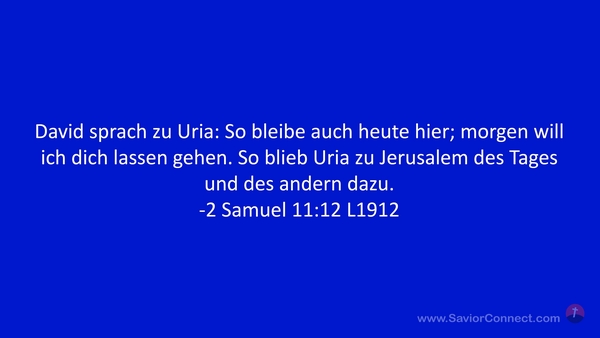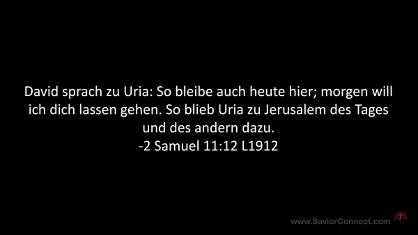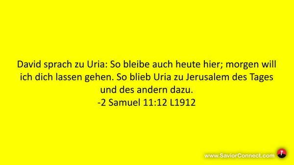 David sprach zu Uria: So bleibe auch heute hier; morgen will ich dich lassen gehen. So blieb Uria zu Jerusalem des Tages und des andern dazu. -2 Samuel 11:12 L1912