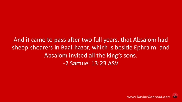 Über zwei Jahre aber hatte Absalom Schafscherer zu Baal-Hazor, das bei Ephraim liegt; und Absalom lud alle Kinder des Königs -2 Samuel 13:23 L1912