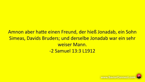 Amnon aber hatte einen Freund, der hieß Jonadab, ein Sohn Simeas, Davids Bruders; und derselbe Jonadab war ein sehr weiser Mann. -2 Samuel 13:3 L1912