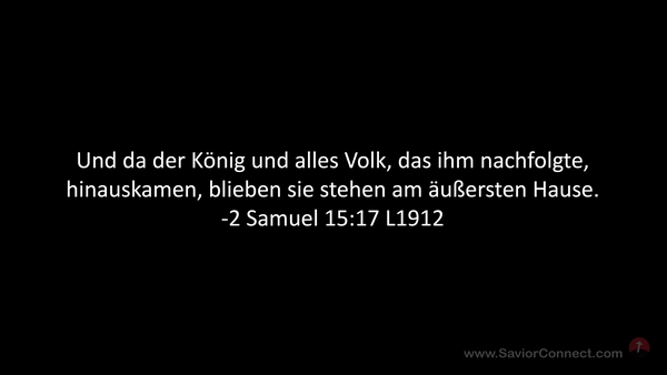 Und da der König und alles Volk, das ihm nachfolgte, hinauskamen, blieben sie stehen am äußersten Hause. -2 Samuel 15:17 L1912
