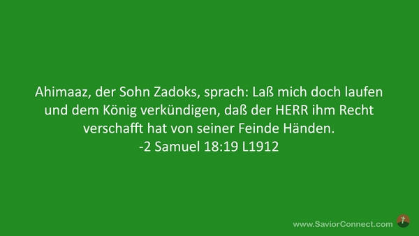 Ahimaaz, der Sohn Zadoks, sprach: Laß mich doch laufen und dem König verkündigen, daß der HERR ihm Recht verschafft hat von seiner Feinde Händen. -2 Samuel 18:19 L1912