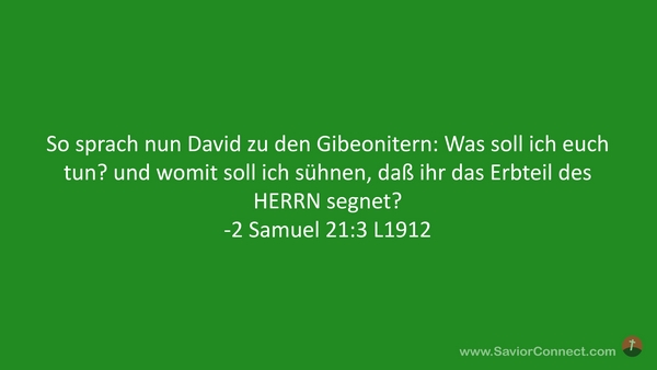 So sprach nun David zu den Gibeonitern: Was soll ich euch tun? und womit soll ich sühnen, daß ihr das Erbteil des HERRN segnet? -2 Samuel 21:3 L1912
