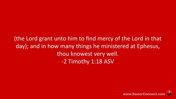Der HERR gebe ihm, daß er finde Barmherzigkeit bei dem HERRN an jenem Tage. Und wieviel er zu Ephesus gedient hat, weißt du am besten. -2 Timotheus 1:18 L1912