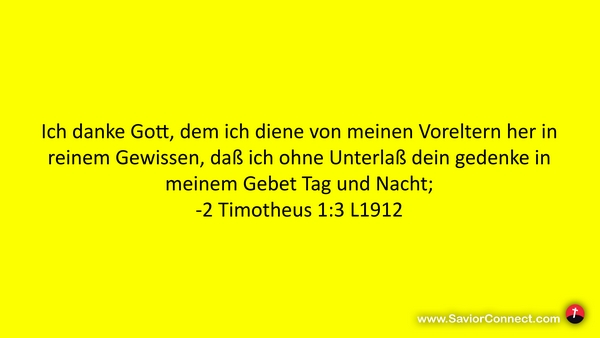 Ich danke Gott, dem ich diene von meinen Voreltern her in reinem Gewissen, daß ich ohne Unterlaß dein gedenke in meinem Gebet Tag und Nacht; -2 Timotheus 1:3 L1912