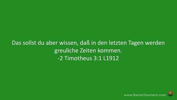 Das sollst du aber wissen, daß in den letzten Tagen werden greuliche Zeiten kommen. -2 Timotheus 3:1 L1912
