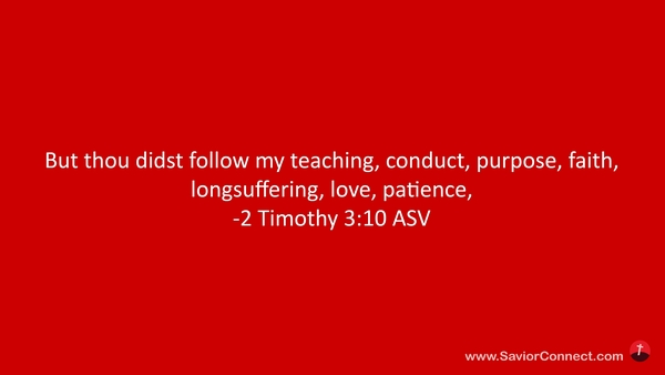 Du aber bist nachgefolgt meiner Lehre, meiner Weise, meiner Meinung, meinem Glauben, meiner Langmut, meiner Liebe, meiner Geduld, -2 Timotheus 3:10 L1912