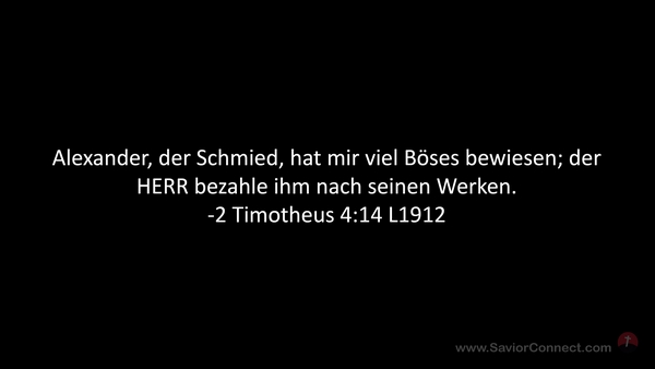 Alexander, der Schmied, hat mir viel Böses bewiesen; der HERR bezahle ihm nach seinen Werken. -2 Timotheus 4:14 L1912