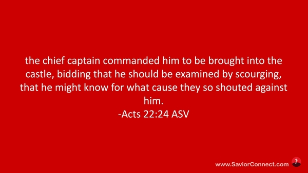 hieß ihn der Hauptmann ins Lager führen und sagte, daß man ihn stäupen und befragen sollte, daß er erführe, um welcher Ursache willen sie also über ihn riefen. -Apostelgeschichte 22:24 L1912