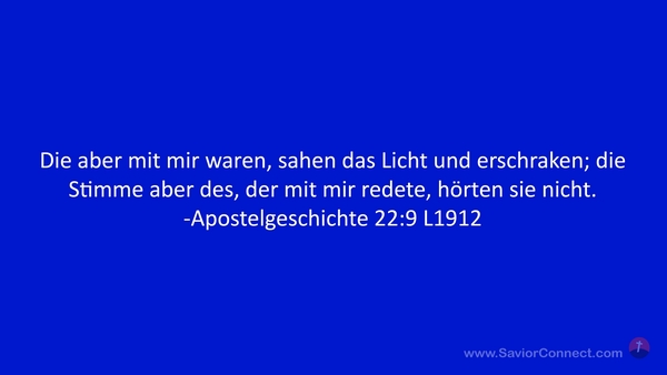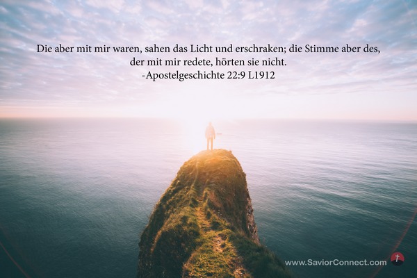 Die aber mit mir waren, sahen das Licht und erschraken; die Stimme aber des, der mit mir redete, hörten sie nicht. -Apostelgeschichte 22:9 L1912