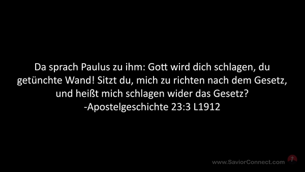 Da sprach Paulus zu ihm: Gott wird dich schlagen, du getünchte Wand! Sitzt du, mich zu richten nach dem Gesetz, und heißt mich schlagen wider das Gesetz? -Apostelgeschichte 23:3 L1912