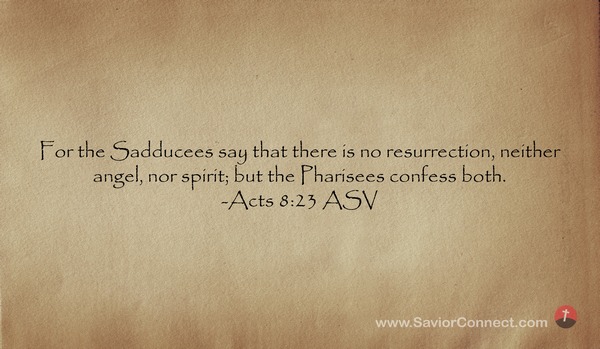 (Denn die Sadduzäer sagen: Es sei keine Auferstehung noch Engel noch Geist; die Pharisäer aber bekennen beides.) -Apostelgeschichte 23:8 L1912