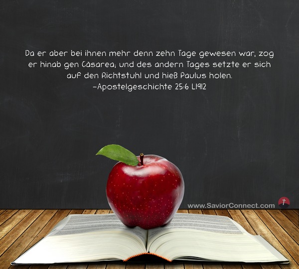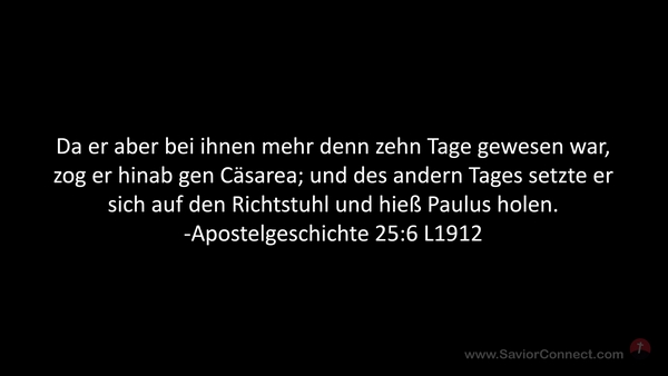 Da er aber bei ihnen mehr denn zehn Tage gewesen war, zog er hinab gen Cäsarea; und des andern Tages setzte er sich auf den Richtstuhl und hieß Paulus holen. -Apostelgeschichte 25:6 L1912