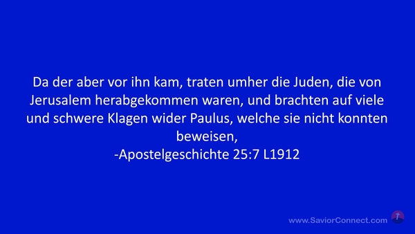 Da der aber vor ihn kam, traten umher die Juden, die von Jerusalem herabgekommen waren, und brachten auf viele und schwere Klagen wider Paulus, welche sie nicht konnten beweisen, -Apostelgeschichte 25:7 L1912