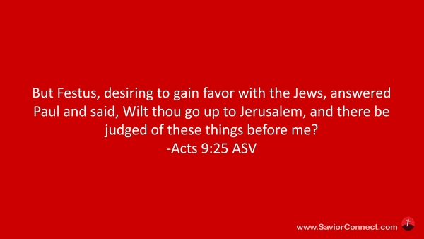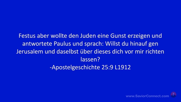 Festus aber wollte den Juden eine Gunst erzeigen und antwortete Paulus und sprach: Willst du hinauf gen Jerusalem und daselbst über dieses dich vor mir richten lassen? -Apostelgeschichte 25:9 L1912