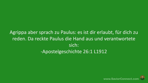 Agrippa aber sprach zu Paulus: es ist dir erlaubt, für dich zu reden. Da reckte Paulus die Hand aus und verantwortete sich: -Apostelgeschichte 26:1 L1912