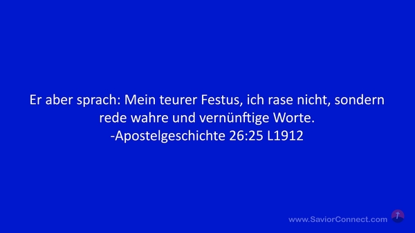 Er aber sprach: Mein teurer Festus, ich rase nicht, sondern rede wahre und vernünftige Worte. -Apostelgeschichte 26:25 L1912