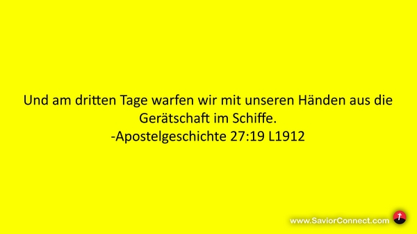 Und am dritten Tage warfen wir mit unseren Händen aus die Gerätschaft im Schiffe. -Apostelgeschichte 27:19 L1912