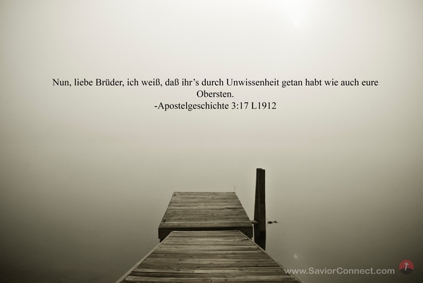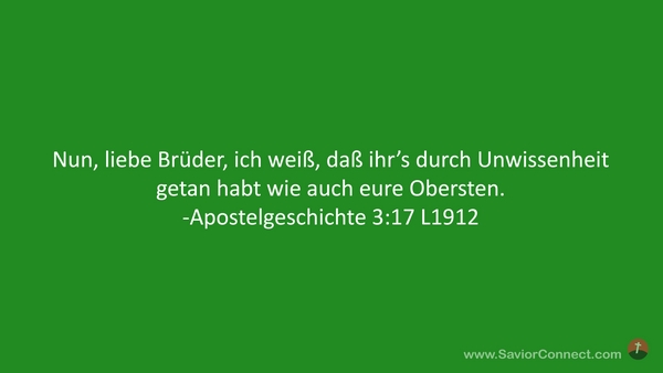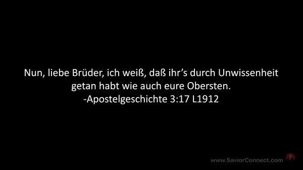 Nun, liebe Brüder, ich weiß, daß ihr's durch Unwissenheit getan habt wie auch eure Obersten. -Apostelgeschichte 3:17 L1912