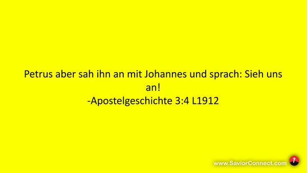 Petrus aber sah ihn an mit Johannes und sprach: Sieh uns an! -Apostelgeschichte 3:4 L1912