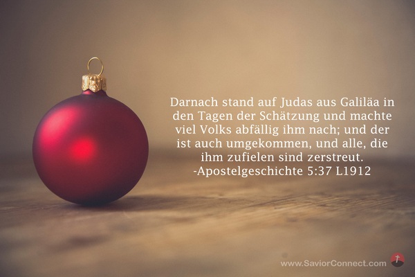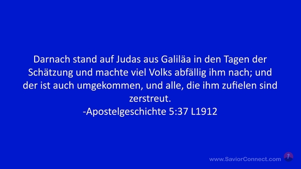 Darnach stand auf Judas aus Galiläa in den Tagen der Schätzung und machte viel Volks abfällig ihm nach; und der ist auch umgekommen, und alle, die ihm zufielen sind zerstreut. -Apostelgeschichte 5:37 L1912