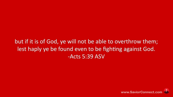 ist's aber aus Gott, so könnet ihr's nicht dämpfen; auf daß ihr nicht erfunden werdet als die wider Gott streiten wollen. -Apostelgeschichte 5:39 L1912