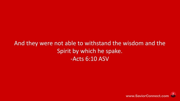 Und sie vermochten nicht, zu widerstehen der Weisheit und dem Geiste, aus welchem er redete. -Apostelgeschichte 6:10 L1912