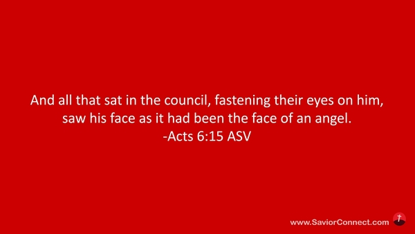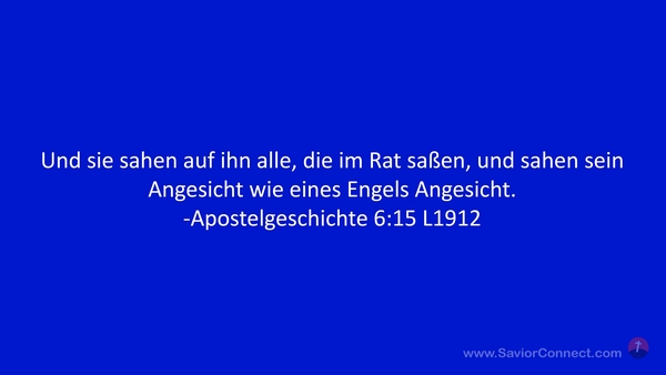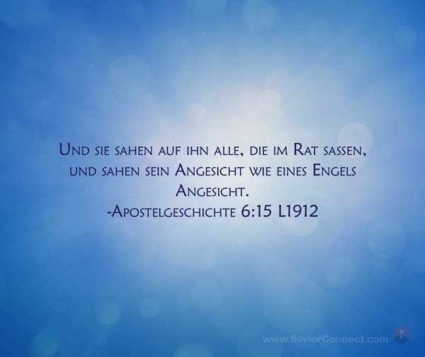 Und sie sahen auf ihn alle, die im Rat saßen, und sahen sein Angesicht wie eines Engels Angesicht. -Apostelgeschichte 6:15 L1912