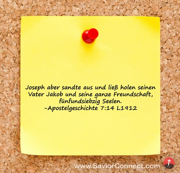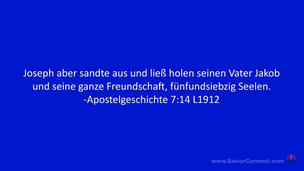 Joseph aber sandte aus und ließ holen seinen Vater Jakob und seine ganze Freundschaft, fünfundsiebzig Seelen. -Apostelgeschichte 7:14 L1912