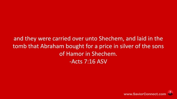 Und sie sind herübergebracht nach Sichem und gelegt in das Grab, das Abraham gekauft hatte ums Geld von den Kindern Hemor zu Sichem. -Apostelgeschichte 7:16 L1912