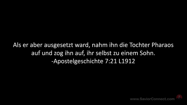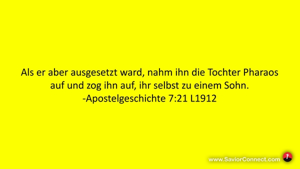 Als er aber ausgesetzt ward, nahm ihn die Tochter Pharaos auf und zog ihn auf, ihr selbst zu einem Sohn. -Apostelgeschichte 7:21 L1912