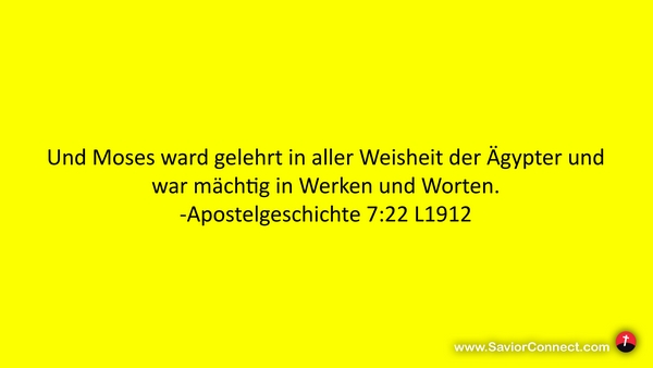 Und Moses ward gelehrt in aller Weisheit der Ägypter und war mächtig in Werken und Worten. -Apostelgeschichte 7:22 L1912