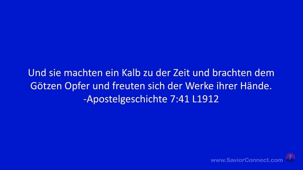 Und sie machten ein Kalb zu der Zeit und brachten dem Götzen Opfer und freuten sich der Werke ihrer Hände. -Apostelgeschichte 7:41 L1912