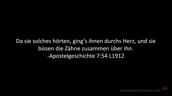 Da sie solches hörten, ging's ihnen durchs Herz, und sie bissen die Zähne zusammen über ihn. -Apostelgeschichte 7:54 L1912