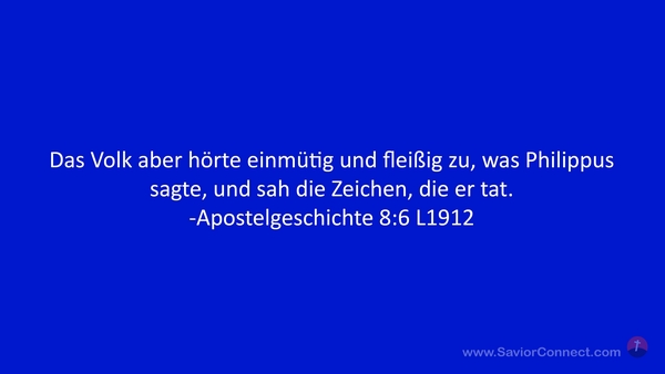 Das Volk aber hörte einmütig und fleißig zu, was Philippus sagte, und sah die Zeichen, die er tat. -Apostelgeschichte 8:6 L1912