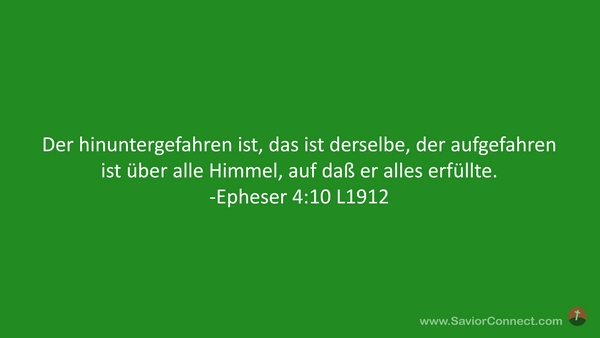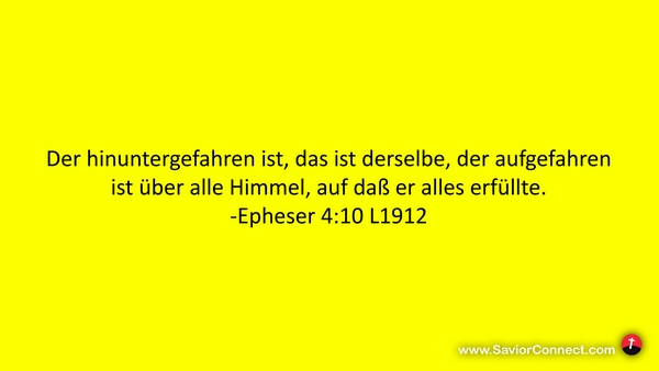 Der hinuntergefahren ist, das ist derselbe, der aufgefahren ist über alle Himmel, auf daß er alles erfüllte. -Epheser 4:10 L1912