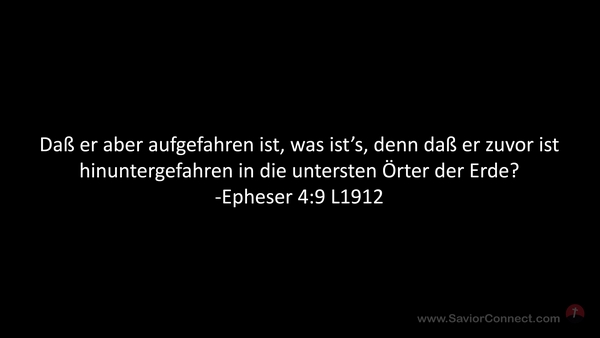 Daß er aber aufgefahren ist, was ist's, denn daß er zuvor ist hinuntergefahren in die untersten Örter der Erde? -Epheser 4:9 L1912