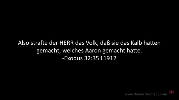 Also strafte der HERR das Volk, daß sie das Kalb hatten gemacht, welches Aaron gemacht hatte. -Exodus 32:35 L1912