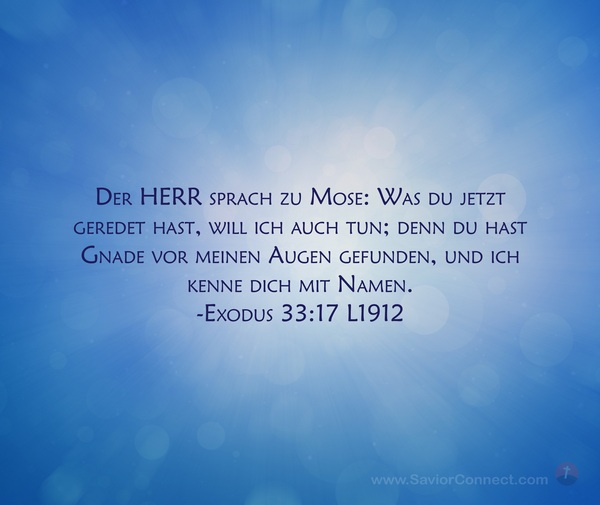 Der HERR sprach zu Mose: Was du jetzt geredet hast, will ich auch tun; denn du hast Gnade vor meinen Augen gefunden, und ich kenne dich mit Namen. -Exodus 33:17 L1912
