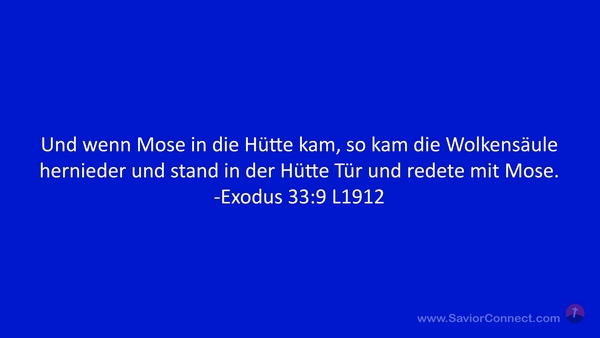 Und wenn Mose in die Hütte kam, so kam die Wolkensäule hernieder und stand in der Hütte Tür und redete mit Mose. -Exodus 33:9 L1912