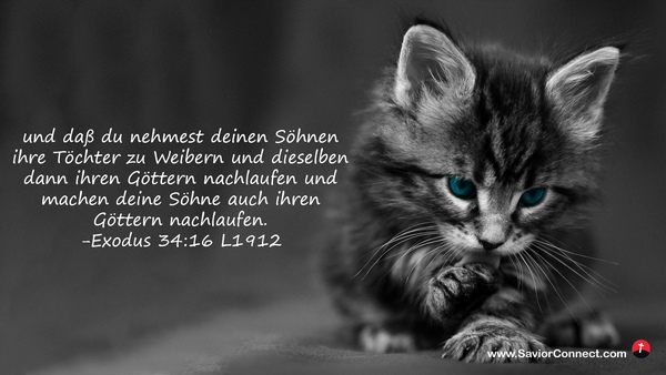und daß du nehmest deinen Söhnen ihre Töchter zu Weibern und dieselben dann ihren Göttern nachlaufen und machen deine Söhne auch ihren Göttern nachlaufen. -Exodus 34:16 L1912