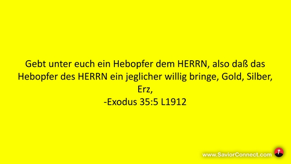 Gebt unter euch ein Hebopfer dem HERRN, also daß das Hebopfer des HERRN ein jeglicher willig bringe, Gold, Silber, Erz, -Exodus 35:5 L1912
