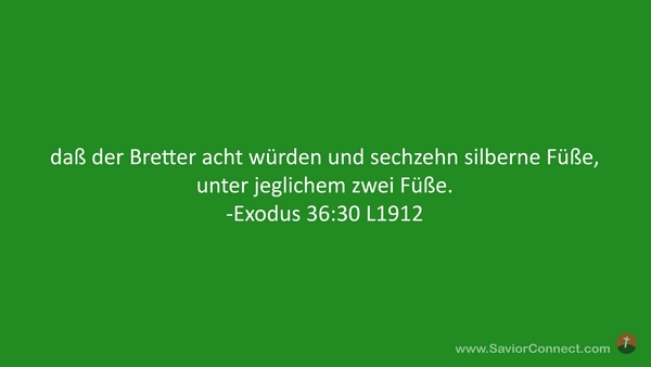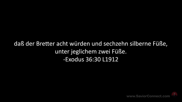 daß der Bretter acht würden und sechzehn silberne Füße, unter jeglichem zwei Füße. -Exodus 36:30 L1912
