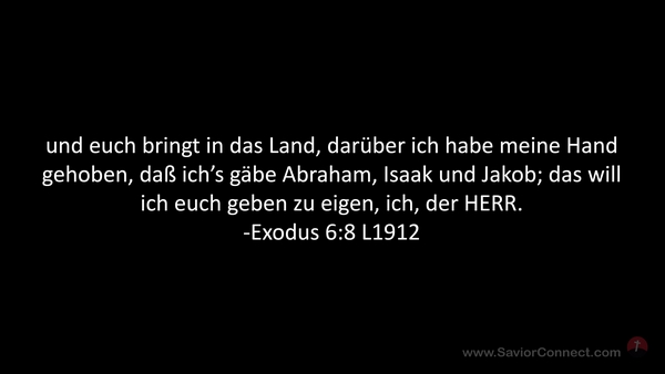 und euch bringt in das Land, darüber ich habe meine Hand gehoben, daß ich's gäbe Abraham, Isaak und Jakob; das will ich euch geben zu eigen, ich, der HERR. -Exodus 6:8 L1912