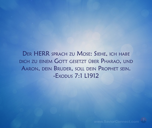Der HERR sprach zu Mose: Siehe, ich habe dich zu einem Gott gesetzt über Pharao, und Aaron, dein Bruder, soll dein Prophet sein. -Exodus 7:1 L1912