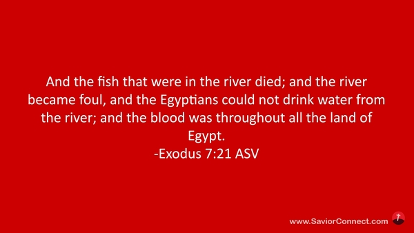 Und die Fische im Strom starben, und der Strom ward stinkend, daß die Ägypter nicht trinken konnten das Wasser aus dem Strom; und es war Blut in ganz Ägyptenland. -Exodus 7:21 L1912