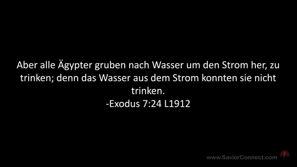 Aber alle Ägypter gruben nach Wasser um den Strom her, zu trinken; denn das Wasser aus dem Strom konnten sie nicht trinken. -Exodus 7:24 L1912